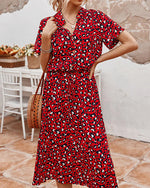 V-neck printed half-sleeved long dress