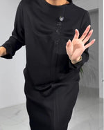 Roud Neck Casual Dress with Pockets