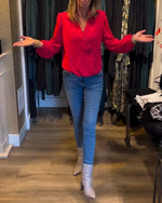 SPECIFICATIONS Top Type: Blouses Style: Elegant Material: 100% Polyester Occasion: Daily, Vacation Neckline: V neck_V Pattern Type: Solid Color Sleeve Type: Flare Sleeve Sleeve Length: Long Sleeve Fit Type: Regular Season: Fall, Winter Details: Ruffle Package Includes: 1 x Blouse   SIZE TABLE Size US Bust Length Sleeve Leng...
