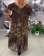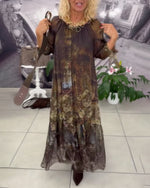SPECIFICATIONS Style: Elegant Material: Cotton Blends Dress Type: A-Line Dress Length: Maxi Neckline: V neck_V Pattern Type: Leaves Sleeve Type: Puff Sleeve Sleeve Length: Short Sleeve Details: Shirred Fit Type: Regular Season: Spring, Summer Occasion: Daily, Vacation Package Includes: 1 x Dress SIZE TABLE Size US Bust Lengt...