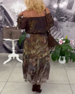 SPECIFICATIONS Style: Casual, Vacation Dress Type: A-Line Dress Length: Maxi Neckline: V neck_V Pattern Type: Print Sleeve Type: Lantern Sleeve Details: Drawstring Fit Type: Regular Material: 95% polyester, 5% spandex Season: Spring, Summer, Fall Occasion: Daily, Vacation Package Includes: 1 x Dress SIZE TABLE (cm) Size Bust Length Sho...