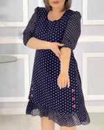 SPECIFICATIONS Style: Elegant Material: Spandex, Polyester Dress Type: Shift dress Dress Length: Knee Length Neckline: V neck_V Pattern Type: Solid Color Sleeve Type: Slit Sleeves Sleeve Length: Half Sleeve Details: Patchwork Fit Type: Regular Season: Spring, Summer Occasion: Daily Package Includes: 1 x Dress SIZE TABLE Size ...