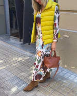 SPECIFICATIONS Style: Casual Material: 5% Spandex, 95% Polyester Dress Type: Shift dress Dress Length: Midi Neckline: V neck_V, Lapel Pattern Type: Print Sleeve Type: Regular sleeve Sleeve Length: Long Sleeve Details: Slit Fit Type: Loose Season: Spring, Summer Occasion: Daily Package Includes: 1 x Dress SIZE TABLE Size ...
