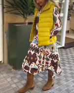 SPECIFICATIONS Style: Elegant Material: 5% Spandex, 95% Polyester Dress Type: A-Line Dress Length: Knee Length Neckline: Round Neck Pattern Type: Print Sleeve Type: Regular sleeve Sleeve Length: Long Sleeve Details: Pocket Fit Type: Regular Season: Fall, Winter Occasion: Daily, Vacation Package Includes: 1 x Dress SIZE TABLE S...