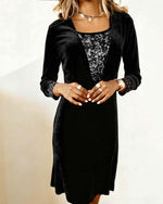 SPECIFICATIONS Style: Elegant, Business Material: 95% polyester, 5% spandex Dress Type: Shift dress Dress Length: Knee Length Neckline: Round Neck Pattern Type: Solid Color Sleeve Type: Regular sleeve Sleeve Length: Long Sleeve Details: Patchwork, See-through Fit Type: Regular Season: Spring, Fall, Winter Occasion: Daily, Work Package Include...