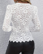 SPECIFICATIONS Top Type: Tops Style: Casual Material: 100% Cotton Occasion: Daily Neckline: Round Neck Pattern Type: Solid Color Sleeve Type: Raglan sleeve Sleeve Length: 3/4 Sleeve Fit Type: Loose Season: Spring, Summer, Fall Details: Hollow Out, Lace Package Includes: 1 x Top SIZE TABLE (cm) Size Bust Length Sleeve Length...