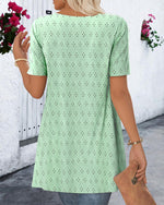 SPECIFICATIONS Style: Elegant Material: Chiffon, Polyester Dress Type: Shift dress Dress Length: Midi Neckline: Round Neck Pattern Type: Solid Color Sleeve Type: Regular sleeve Sleeve Length: Short Sleeve Details: Patchwork, Hollow Out Fit Type: Regular Season: Spring, Summer, Fall Occasion: Daily Package Includes: 1 x Dress SIZE TABLE ...