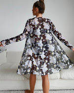 SPECIFICATIONS Style: Casual Material: 5% Spandex, 95% Polyester Dress Type: Shift dress Dress Length: Midi Neckline: V neck_V, Lapel Pattern Type: Print Sleeve Type: Regular sleeve Sleeve Length: Long Sleeve Details: Slit Fit Type: Loose Season: Spring, Summer Occasion: Daily Package Includes: 1 x Dress SIZE TABLE Size ...