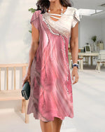 FEATURES Elegant V-neck design: The elegant V-neck design perfectly highlights the charming neck line, adding a touch of elegance and charm to the overall look. Exquisite prints: The unique and exquisite prints are like works of art embellishing the skirt, making you the focus wherever you go, showing your fashion taste. Chic knot details: T...