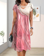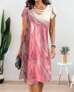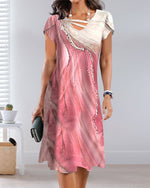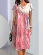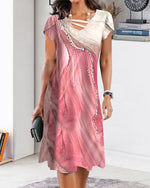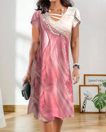 SPECIFICATIONS Style: Elegant Material: Chiffon, Polyester Dress Type: Shift dress Dress Length: Midi Neckline: Round Neck Pattern Type: Solid Color Sleeve Type: Regular sleeve Sleeve Length: Short Sleeve Details: Patchwork, Hollow Out Fit Type: Regular Season: Spring, Summer, Fall Occasion: Daily Package Includes: 1 x Dress SIZE TABLE ...