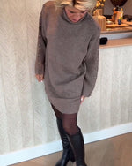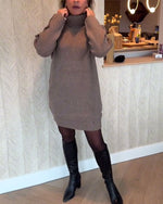 SPECIFICATIONS Category: Sweater Dresses Style: Casual, Business Material: 50% Viscose, 28% PBT, 22% Nylon Neckline: Round Neck Pattern Type: Solid color Sleeve Type: Dropped shoulder Dress Type: Straight Dress Length: Knee Length Sleeve Length: Long Sleeve Details: Ribbed, Patchwork Fit Type: Loose Occasion: Daily, Work Season: Spring, Fall,...