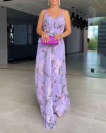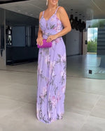 V-neck printed half-sleeved long dress