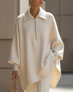 Half-Zip Lapel Lantern Sleeve Sweatshirt
