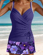 FEATURES Elegant V-neck design: The elegant V-neck design perfectly highlights the charming neck line, adding a touch of elegance and charm to the overall look. Exquisite prints: The unique and exquisite prints are like works of art embellishing the skirt, making you the focus wherever you go, showing your fashion taste. Chic knot details: T...