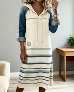 Hooded Striped Color Block Dress