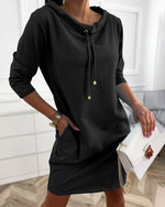 SPECIFICATIONS Style: Casual Material: 65% Polyester, 35% Elasthan Dress Type: Shift dress Dress Length: Midi Neckline: Round Neck Pattern Type: Solid Color Sleeve Type: Regular sleeve Sleeve Length: Long Sleeve Details: Pocket Fit Type: Regular Season: Spring, Fall Occasion: Daily, Vacation Package Includes: 1 x Dress SIZE TABLE ...