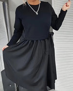 SPECIFICATIONS Style: Elegant, Business Material: 95% polyester, 5% spandex Dress Type: Shift dress Dress Length: Knee Length Neckline: Round Neck Pattern Type: Solid Color Sleeve Type: Regular sleeve Sleeve Length: Long Sleeve Details: Patchwork, See-through Fit Type: Regular Season: Spring, Fall, Winter Occasion: Daily, Work Package Include...