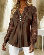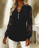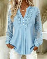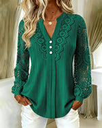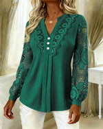 Lace Paneled Long-Sleeved V-Neck Blouse