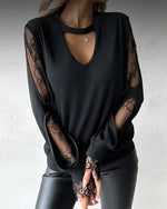 SPECIFICATIONS Top Type: Tops Style: Chic, Sexy Material: 35% Spandex, 65% Polyester Occasion: Daily Neckline: V neck_V Pattern Type: Solid Color Sleeve Type: Regular sleeve Sleeve Length: Long Sleeve Fit Type: Regular Season: Spring, Fall Details: Patchwork, Buttons, Hollow Out Package Includes: 1 x Tops SIZE TABLE Size ...