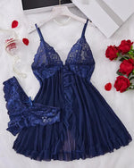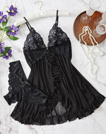 Ladies' Sexy Ruffle Trim Lace Cami Nightdress & Bow Decor Panty Set