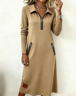 Zipper Lapel Long Sleeve Dress