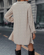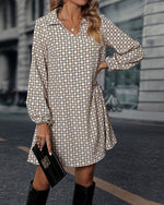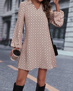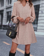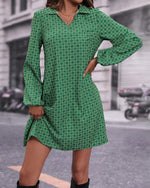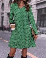 SPECIFICATIONS Style: Elegant Material: 5% Spandex, 95% Polyester Dress Type: A-Line Dress Length: Knee Length Neckline: Round Neck Pattern Type: Print Sleeve Type: Regular sleeve Sleeve Length: Long Sleeve Details: Pocket Fit Type: Regular Season: Fall, Winter Occasion: Daily, Vacation Package Includes: 1 x Dress SIZE TABLE S...