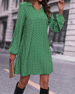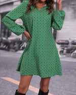 SPECIFICATIONS Style: Casual Material: Spandex, Polyester Dress Type: A-Line Dress Length: Knee Length Neckline: V neck_V Pattern Type: Print Sleeve Type: Regular sleeve Sleeve Length: Long Sleeve Details: Drawstring Fit Type: Regular Season: Spring, Summer Occasion: Daily Package Includes: 1 x Dress SIZE TABLE Size Bust Length S...