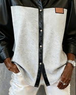 Lapel Patchwork Leather Shirt