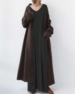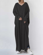 SPECIFICATIONS Style: Chic Material: 100% Polyester Dress Type: A-Line Dress Length: Knee Length Neckline: V neck_V Pattern Type: Solid Color Sleeve Type: Regular sleeve Sleeve Length: Long Sleeve Fit Type: Regular Season: Fall, Winter Occasion: Daily, Vacation Package Includes: 1 x Dress   SIZE TABLE Size Bust Length Sleeves...