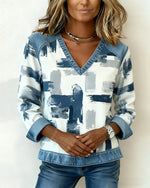 SPECIFICATIONS Top Type: Blouses Style: Casual Material: 95% Polyester, 5% Spandex Occasion: Daily, Work Neckline: V neck_V Pattern Type: Geometric Print Sleeve Type: Regular sleeve Sleeve Length: Long Sleeve Fit Type: Loose Season: Spring, Fall, Winter Package Includes: 1 x Blouse SIZE TABLE Size Length Shoulder Bust Sleeves C...