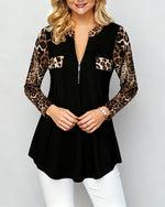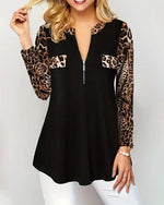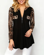 Long-Sleeved Leopard Print Half-Zip Sweatshirt