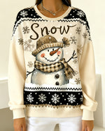 Long-Sleeved Snowman Print Casual Sweatshirt