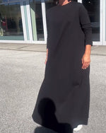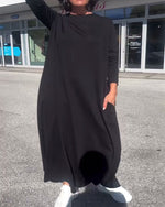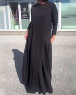 SPECIFICATIONS Style: Casual Material: 65% Polyester, 35% Elasthan Dress Type: Shift dress Dress Length: Midi Neckline: Round Neck Pattern Type: Solid Color Sleeve Type: Regular sleeve Sleeve Length: Long Sleeve Details: Pocket Fit Type: Regular Season: Spring, Fall Occasion: Daily, Vacation Package Includes: 1 x Dress SIZE TABLE ...