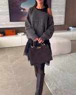 Off-Shoulder Loose Sweater & Lace Hem Dress
