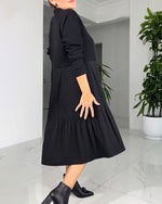 SPECIFICATIONS Style: Casual Material: 65% Polyester, 35% Elasthan Dress Type: Shift dress Dress Length: Midi Neckline: Round Neck Pattern Type: Solid Color Sleeve Type: Regular sleeve Sleeve Length: Long Sleeve Details: Pocket Fit Type: Regular Season: Spring, Fall Occasion: Daily, Vacation Package Includes: 1 x Dress SIZE TABLE ...