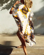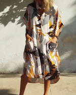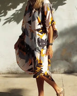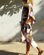 SPECIFICATIONS Style: Casual Material: 5% Spandex, 95% Polyester Dress Type: Shift dress Dress Length: Midi Neckline: V neck_V, Lapel Pattern Type: Print Sleeve Type: Regular sleeve Sleeve Length: Long Sleeve Details: Slit Fit Type: Loose Season: Spring, Summer Occasion: Daily Package Includes: 1 x Dress SIZE TABLE Size ...