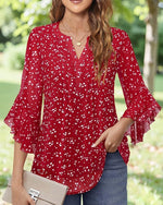SPECIFICATIONS Top Type: Blouses Style: Elegant Material: 100% Polyester Occasion: Daily, Vacation Neckline: V neck_V Pattern Type: Solid Color Sleeve Type: Flare Sleeve Sleeve Length: Long Sleeve Fit Type: Regular Season: Fall, Winter Details: Ruffle Package Includes: 1 x Blouse   SIZE TABLE Size US Bust Length Sleeve Leng...
