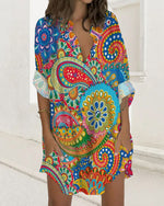 SPECIFICATIONS Style: Casual Material: 5% Spandex, 95% Polyester Dress Type: Shift dress Dress Length: Midi Neckline: V neck_V, Lapel Pattern Type: Print Sleeve Type: Regular sleeve Sleeve Length: Long Sleeve Details: Slit Fit Type: Loose Season: Spring, Summer Occasion: Daily Package Includes: 1 x Dress SIZE TABLE Size ...