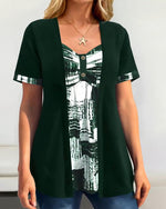 Printed Fake Two Piece Irregular Blouse