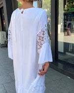 SPECIFICATIONS Style: Elegant Material: Chiffon, Polyester Dress Type: Shift dress Dress Length: Midi Neckline: Round Neck Pattern Type: Solid Color Sleeve Type: Regular sleeve Sleeve Length: Short Sleeve Details: Patchwork, Hollow Out Fit Type: Regular Season: Spring, Summer, Fall Occasion: Daily Package Includes: 1 x Dress SIZE TABLE ...