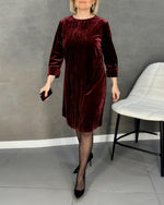 SPECIFICATIONS Style: Chic Material: 100% Polyester Dress Type: A-Line Dress Length: Knee Length Neckline: V neck_V Pattern Type: Solid Color Sleeve Type: Regular sleeve Sleeve Length: Long Sleeve Fit Type: Regular Season: Fall, Winter Occasion: Daily, Vacation Package Includes: 1 x Dress   SIZE TABLE Size Bust Length Sleeves...