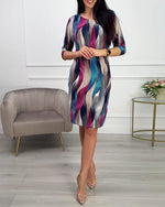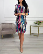 SPECIFICATIONS Style: Casual Material: 5% Spandex, 95% Polyester Dress Type: A-Line Dress Length: Knee Length Neckline: V neck_V Pattern Type: Print Sleeve Type: Flare Sleeve Sleeve Length: 3/4 Sleeve Fit Type: Regular Season: Spring, Summer Occasion: Daily Package Includes: 1 x Dress SIZE TABLE Size Bust Length Sleeve le...
