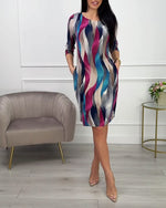 SPECIFICATIONS Style: Elegant Material: 5% Spandex, 95% Polyester Dress Type: A-Line Dress Length: Knee Length Neckline: Round Neck Pattern Type: Print Sleeve Type: Regular sleeve Sleeve Length: Long Sleeve Details: Pocket Fit Type: Regular Season: Fall, Winter Occasion: Daily, Vacation Package Includes: 1 x Dress SIZE TABLE S...
