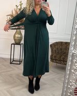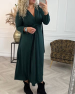 V-neck long sleeve slit dress