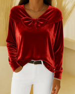 Solid Color Bow V-Neck Top