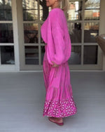 V-neck printed half-sleeved long dress