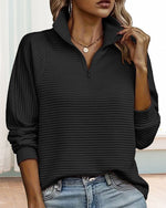 SPECIFICATIONS Category: Pullovers Style: Casual Material: 100% Polyester Neckline: Stand Collar Pattern Type: Striped Sleeve Type: Dropped shoulder Sleeve Length: Long Sleeve Details: Slit Fit Type: Regular Occasion: Daily Season: Spring, Fall, Winter Package Includes: 1 x Pullover SIZE TABLE Size Bust Length Sleeves CM I...