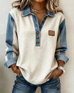 Stylish Denim Patchwork Long-Sleeved Sweatshirt