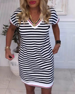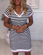 Aumora V-Neck Contrast Striped Dress