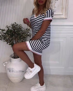 V-neck Shirt Dress in Stripe Print
